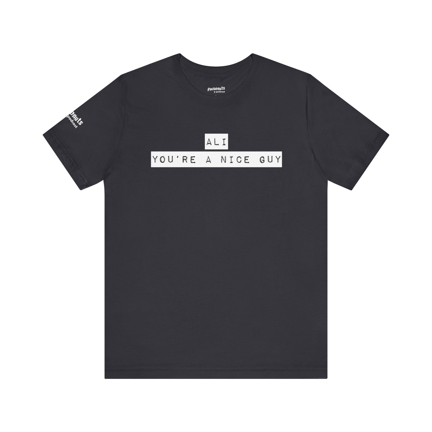 Ali You’re A Nice Guy T-Shirt – Funny Viral Quote Tee, Unisex Soft Cotton Crewneck, WiseNuts Podcast Merch, Hilarious Gift Idea for Men & Women